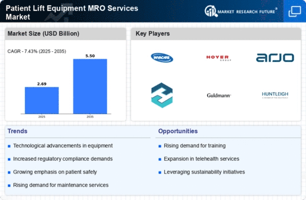 The Middle East and Africa region is in the early stages of developing its Patient Lift Equipment MRO Services market, currently valued at 0.1B in 2024. The growth is driven by increasing healthcare investments, a rising population, and a growing awareness of the importance of patient mobility solutions. Governments are beginning to recognize the need for improved healthcare infrastructure, which is expected to spur demand for patient lift equipment and related services in the coming years.
