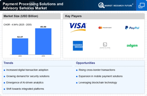 Europe's Payment Processing Solutions and Advisory Services Market is poised for growth, with a market size of 15.0% in 2024. The region benefits from a strong regulatory environment that encourages innovation and consumer protection. Initiatives like the PSD2 directive are driving the adoption of open banking, enhancing competition and improving service offerings. The increasing shift towards cashless transactions and e-commerce is further propelling market demand across various sectors.