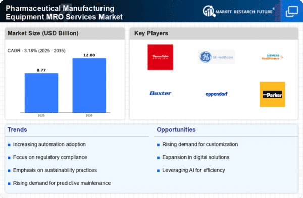 Europe's Pharmaceutical Manufacturing Equipment MRO Services Market is valued at 2.8 billion, reflecting a growing demand for maintenance and repair services. The region benefits from a strong regulatory framework that promotes quality and safety in pharmaceutical production. Increasing investments in R&D and a focus on biopharmaceuticals are key growth drivers, alongside the need for compliance with EU regulations, which enhance operational standards across the industry.