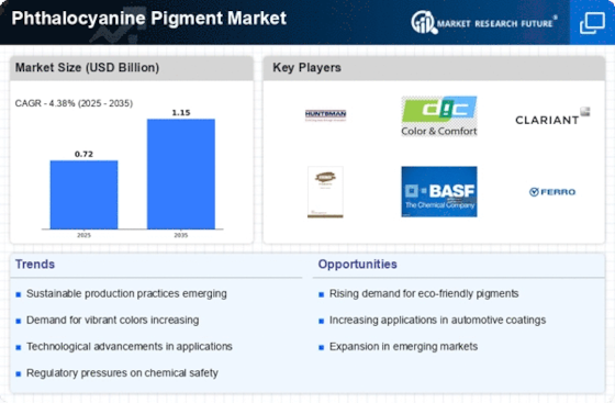 The Phthalocyanine Pigment Market is experiencing a notable shift towards eco-friendly products, driven by increasing consumer awareness regarding environmental sustainability. As industries strive to reduce their carbon footprint, the demand for pigments that are non-toxic and derived from sustainable sources is on the rise. This trend is particularly evident in the coatings and plastics sectors, where manufacturers are actively seeking alternatives to traditional pigments. The market for eco-friendly pigments is projected to grow at a compound annual growth rate of approximately 5% over the next five years, indicating a robust shift in consumer preferences. Consequently, companies within the Phthalocyanine Pigment Market are likely to invest in research and development to create innovative, sustainable products that meet these evolving demands.