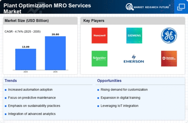Europe, with a market size of 3.5, is witnessing a surge in demand for Plant Optimization MRO services, driven by the need for sustainable practices and regulatory compliance. The European Union's Green Deal and various national initiatives are catalyzing investments in energy-efficient technologies and smart manufacturing. This regulatory environment is fostering innovation, making Europe a key player in the global MRO landscape. Leading countries such as Germany, France, and the UK are at the forefront of this transformation, with major companies like Siemens and Schneider Electric driving advancements. The competitive landscape is characterized by a mix of established firms and emerging startups, all focused on enhancing operational efficiency and sustainability in manufacturing processes. The region's commitment to reducing carbon emissions is shaping the future of MRO services.