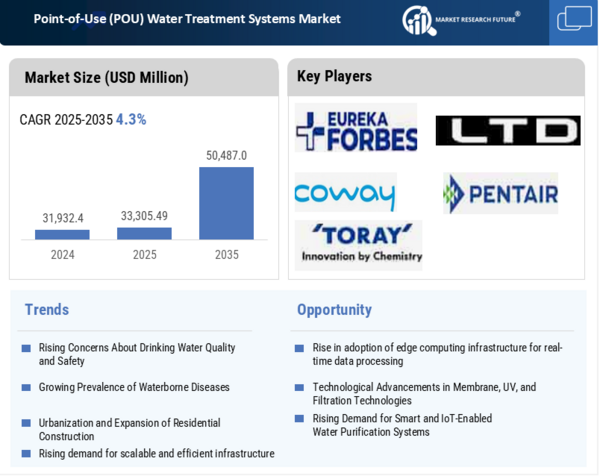 North America represents a mature and highly developed market for Point-of-Use (POU) water treatment systems, driven by stringent water quality standards, high consumer awareness, and a strong focus on health and wellness. The region has a well-established urban infrastructure, but localized water contamination issues, aging pipelines, and concerns over chemical pollutants such as chlorine, lead, and heavy metals have fueled demand for residential and commercial POU systems. In the residential sector, consumers increasingly adopt under-sink RO-UV units, faucet-mounted filters, smart countertop purifiers, and multi-stage filtration systems to ensure safe drinking water. The commercial segment, including offices, hotels, hospitals, and educational institutions, relies on high-capacity multi-point systems and combination technologies (RO-UV or RO-UV-UF) to meet large-scale water purification requirements.