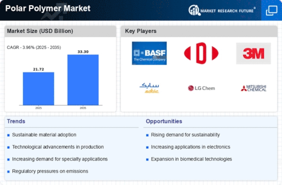 Technological advancements play a crucial role in shaping the Polar Polymer Market. Innovations in polymer synthesis and processing techniques are enabling the production of high-performance polar polymers with enhanced properties. For instance, advancements in nanotechnology are facilitating the development of polar polymers with superior strength and thermal stability. The market is witnessing a rise in the adoption of these advanced materials in sectors such as electronics and healthcare. In 2025, the polar polymer segment is expected to account for a significant share of the overall polymer market, estimated at around 15 billion USD. This growth is indicative of the increasing reliance on technology-driven solutions, which are likely to redefine the landscape of the Polar Polymer Market.