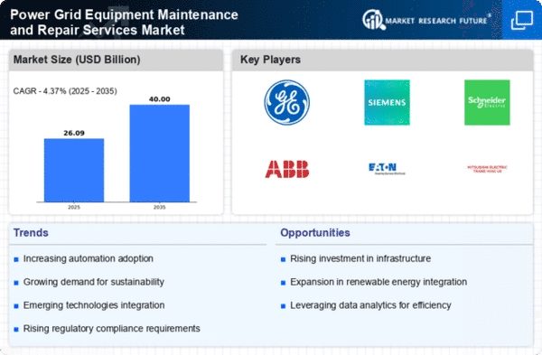 The competitive landscape in North America is robust, featuring key players such as General Electric, Siemens, and Eaton. These companies are leveraging technological advancements to offer innovative solutions that meet the evolving needs of the market. The presence of a well-established regulatory environment supports the growth of maintenance services, ensuring compliance and safety standards are met. This dynamic environment positions North America as a critical hub for power grid services.