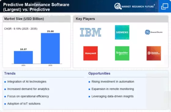 The Predictive Maintenance for Manufacturing Market is currently characterized by a dynamic competitive landscape, driven by technological advancements and the increasing need for operational efficiency. Key players such as IBM (US), Siemens (DE), and Honeywell (US) are at the forefront, leveraging their extensive expertise in data analytics and IoT to enhance predictive capabilities. IBM (US) focuses on integrating AI and machine learning into its predictive maintenance solutions, aiming to provide clients with actionable insights that can significantly reduce downtime. Siemens (DE), on the other hand, emphasizes its digital twin technology, which allows for real-time monitoring and simulation of manufacturing processes, thereby optimizing maintenance schedules. Honeywell (US) is strategically positioning itself through partnerships with various industrial firms, enhancing its service offerings and expanding its market reach. Collectively, these strategies contribute to a competitive environment that is increasingly reliant on innovation and technological integration.In terms of business tactics, companies are increasingly localizing manufacturing and optimizing supply chains to enhance responsiveness to market demands. The market structure appears moderately fragmented, with a mix of established players and emerging startups. This fragmentation allows for diverse offerings, yet the influence of key players remains substantial, as they set benchmarks for technology and service standards.