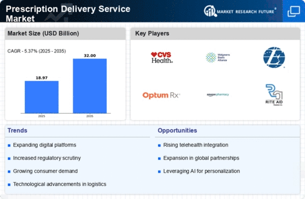 The Middle East and Africa (MEA) region presents a unique opportunity in the Prescription Delivery Service Market, with a market size of 1.5 in 2025. The growth is driven by increasing healthcare investments, a rising population, and a growing awareness of health services. Regulatory frameworks are gradually adapting to support e-pharmacy initiatives, which are essential for improving access to medications in remote areas.
