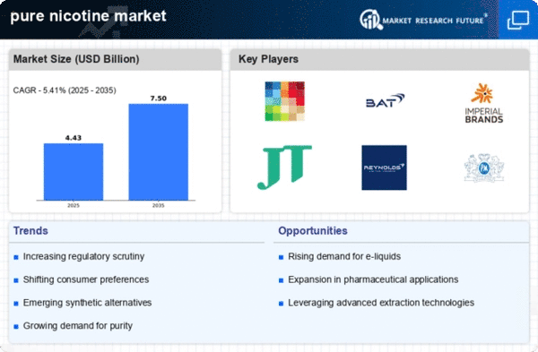 Europe's pure nicotine market is valued at €1.4 billion, driven by evolving consumer preferences and stringent regulations. The region is witnessing a shift towards safer nicotine alternatives, supported by government initiatives aimed at reducing smoking rates. Regulatory frameworks are becoming more defined, which is expected to catalyze market growth and innovation in product offerings. Leading countries such as the UK, Germany, and France are at the forefront of this market, with key players like British American Tobacco and Imperial Brands actively participating. The competitive landscape is marked by a focus on compliance with EU regulations, which encourages the development of safer products. This regulatory environment not only shapes market dynamics but also influences consumer trust and brand loyalty.