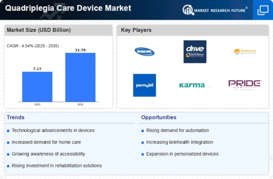 The Quadriplegia Care Device Market is witnessing a notable increase in investment in research and development, which is essential for driving innovation. Companies are allocating significant resources to develop new technologies and improve existing products, aiming to meet the diverse needs of quadriplegic individuals. This focus on R&D is likely to result in the introduction of more effective and user-friendly devices, enhancing the overall market landscape. Additionally, partnerships between academic institutions and industry players are fostering collaborative efforts to advance research in assistive technologies. As a result, the Quadriplegia Care Device Market is poised for growth, with a steady influx of innovative solutions that could transform the lives of users.