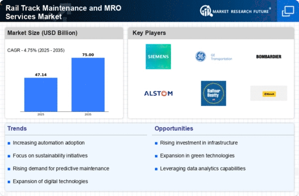 Europe's Rail Track Maintenance and MRO Services Market is projected to reach a size of 12.0 by 2025, driven by a strong emphasis on sustainability and innovation. Regulatory frameworks across the EU are pushing for greener technologies and improved safety standards, which are key growth catalysts. The demand for efficient rail systems is increasing, supported by government initiatives aimed at enhancing public transport and reducing carbon emissions.