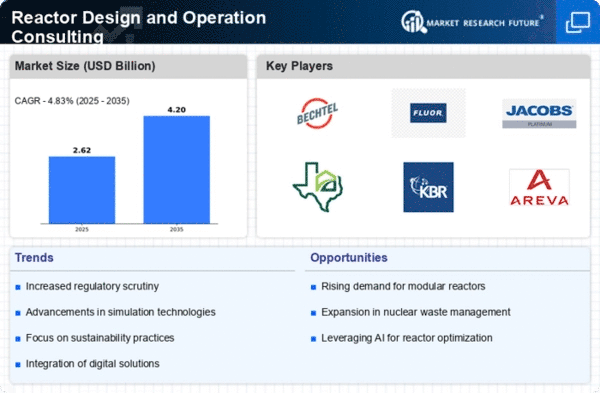 The Reactor Design and Operation Consulting market is characterized by a dynamic competitive landscape, driven by technological advancements, regulatory changes, and an increasing emphasis on sustainability. Key players such as Bechtel (US), Fluor Corporation (US), and AREVA (FR) are strategically positioned to leverage their extensive experience and innovative capabilities. Bechtel (US) focuses on integrating digital solutions into its operations, enhancing project efficiency and safety. Fluor Corporation (US) emphasizes sustainability in its projects, aligning with global environmental goals, while AREVA (FR) is concentrating on expanding its nuclear services portfolio, particularly in emerging markets. Collectively, these strategies contribute to a competitive environment that prioritizes innovation and adaptability.In terms of business tactics, companies are increasingly localizing their operations to better serve regional markets and optimize supply chains. The market appears moderately fragmented, with several key players holding substantial market shares. This fragmentation allows for a diverse range of services and solutions, fostering competition that drives innovation and efficiency across the sector.