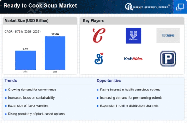 Europe's ready-to-cook soup market is valued at €1.8 billion, showcasing a growing trend towards convenience and health-oriented products. Factors such as busy lifestyles and an increasing focus on nutrition are driving demand. Regulatory frameworks in the EU promote food safety and quality, which are crucial for market growth. The rise of e-commerce and online grocery shopping is also facilitating access to a wider range of soup products. Leading countries in this region include Germany, France, and the UK, where consumer preferences are shifting towards organic and natural ingredients. Major players like Unilever and Nestle are investing in product innovation to meet these demands. The competitive landscape is characterized by a mix of established brands and local producers, enhancing market diversity and consumer choice.