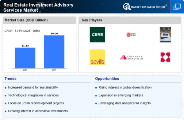 The Middle East and Africa region is gradually emerging in the Real Estate Investment Advisory Services market, with a size of 2.0 in 2025. The growth is driven by urbanization, infrastructure development, and increasing foreign investments. Countries like the UAE and South Africa are leading the way, supported by government initiatives aimed at enhancing the real estate sector. Regulatory frameworks are evolving to attract more investments, creating a conducive environment for growth.
