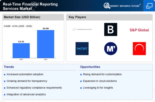 Europe's Real-Time Financial Reporting Services Market is poised for growth, with a market size of 3.75 in 2024. The region benefits from increasing regulatory pressures and a shift towards digital transformation in financial services. Countries are adopting stricter compliance measures, which drive demand for real-time reporting solutions. The European Union's initiatives to enhance financial transparency further catalyze market growth, making it a key area for investment.