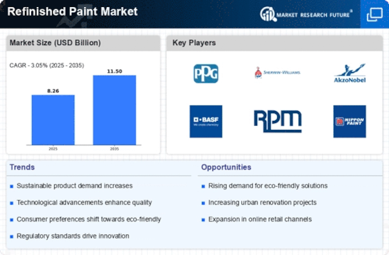 The increasing emphasis on sustainability appears to be a pivotal driver in the Refinished Paint Market. Consumers and manufacturers alike are gravitating towards eco-friendly products that minimize environmental impact. This trend is evidenced by the rise in demand for low-VOC and water-based paints, which are perceived as safer alternatives. In 2025, the market for sustainable refinishing products is projected to grow significantly, as regulations tighten and consumer awareness heightens. Companies that prioritize sustainable practices may find themselves at a competitive advantage, as they align with the values of environmentally conscious consumers. The Refinished Paint Market is thus likely to witness a shift towards products that not only meet aesthetic needs but also contribute positively to environmental sustainability.
