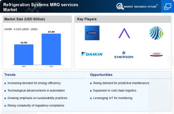 Leading countries in this region include South Africa and the UAE, where companies are beginning to recognize the importance of efficient refrigeration systems. The competitive landscape is still emerging, with both local and international players vying for market share. As awareness of MRO services grows, the region is expected to see gradual improvements in service offerings and technological adoption.