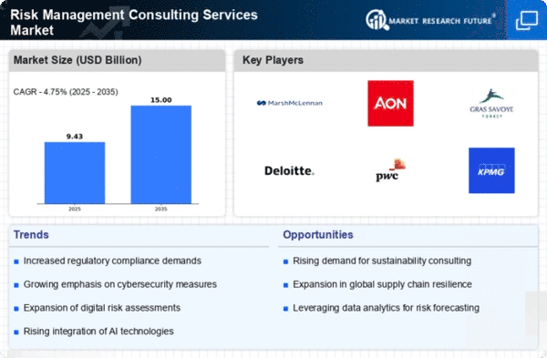 The Risk Management Consulting Services Market is characterized by a dynamic competitive landscape, driven by the increasing complexity of global risks and the need for organizations to navigate these challenges effectively. Key players such as Marsh McLennan (US), Aon (GB), and Deloitte (US) are strategically positioned to leverage their extensive expertise and global reach. Marsh McLennan (US) focuses on integrating advanced analytics and technology into its service offerings, enhancing its ability to provide tailored risk solutions. Aon (GB), on the other hand, emphasizes strategic partnerships and acquisitions to expand its capabilities, particularly in emerging markets. Deloitte (US) is heavily investing in digital transformation, aiming to enhance its risk management frameworks through innovative technologies. Collectively, these strategies contribute to a competitive environment that is increasingly centered around technological advancement and client-centric solutions.The market's competitive structure appears moderately fragmented, with several key players vying for market share while also facing competition from niche firms. Business tactics such as localizing services and optimizing supply chains are prevalent, as firms seek to enhance their responsiveness to client needs. The influence of major players is significant, as their strategic initiatives often set industry standards and drive innovation across the sector.