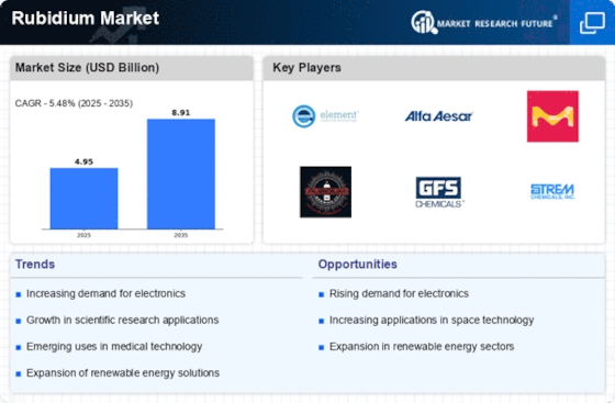 The Middle East and Africa currently represent a small but strategically emerging segment in the global rubidium market. Although natural rubidium resources within the region are limited, geologically significant pegmatites in Namibia and Zimbabwe host rubidium bearing minerals, giving Africa latent potential for supply diversification. On the demand side, the region is witnessing rising interest in rubidium for telecommunications, defense systems, and high precision research applications, driven by ongoing infrastructure investments, technological modernization, and increasing R&D activity. In the Middle East, particularly in the Gulf countries, energy sector diversification is also fueling demand for advanced materials, with rubidium-enhanced components being explored for next generation solar and electronic devices.