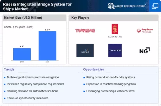 The Russia Integrated Bridge System for Ships Market is bolstered by the growing demand for maritime trade. As Russia continues to expand its trade relationships, particularly in the Asia-Pacific region, the need for efficient and reliable shipping solutions becomes paramount. Integrated bridge systems play a crucial role in ensuring that vessels can navigate complex trade routes safely and efficiently. Recent statistics suggest that maritime trade volumes in Russia have increased by approximately 10% over the past year, further driving the demand for advanced integrated bridge systems. This trend indicates a robust market potential for companies specializing in the development and deployment of these systems.