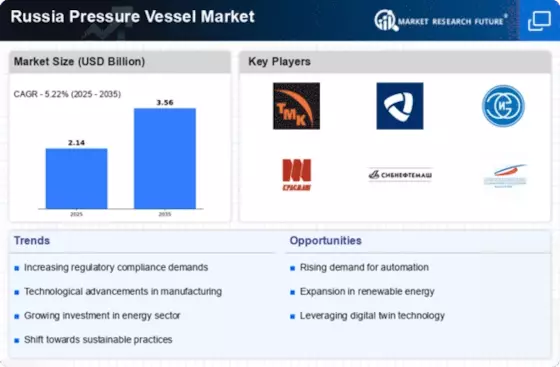 Technological innovations in manufacturing processes are poised to be a key driver for the Russia Pressure Vessel Market. The adoption of advanced manufacturing techniques, such as additive manufacturing and automation, is likely to enhance production efficiency and reduce costs. In 2025, the implementation of these technologies in the manufacturing sector resulted in a 20% increase in productivity. As manufacturers in the Russia Pressure Vessel Market embrace these innovations, they may be able to produce more complex and customized pressure vessels to meet specific client needs. This adaptability could provide a competitive edge in a market that is increasingly demanding tailored solutions.