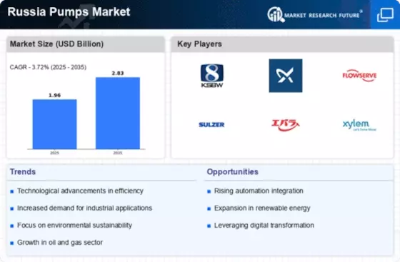 The expansion of the industrial sector in Russia appears to be a primary driver for the Russia Pumps Market. As industries such as oil and gas, chemicals, and manufacturing continue to grow, the demand for pumps is likely to increase. In 2025, the industrial output in Russia was reported to have risen by approximately 4.5%, indicating a robust economic environment. This growth necessitates efficient fluid handling solutions, which pumps provide. The Russia Pumps Market is expected to benefit from this trend, as companies seek to enhance productivity and reduce operational costs through advanced pumping technologies. Furthermore, the increasing focus on automation in industrial processes may lead to a higher adoption of sophisticated pump systems, further propelling market growth.