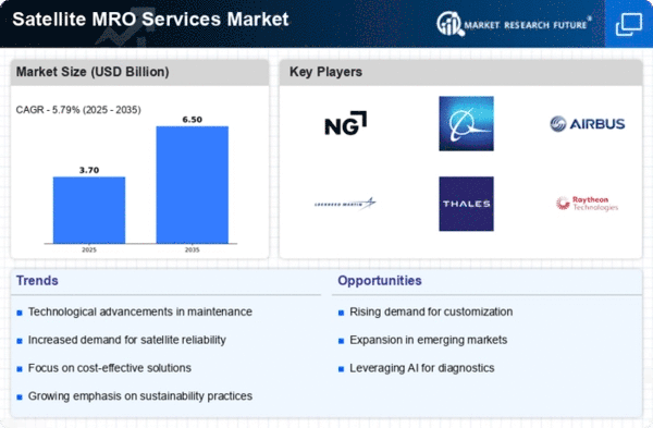 Europe is emerging as a significant player in the Satellite MRO Services market, with a market size of 1.0B in 2025. The region's growth is driven by increasing investments in satellite technology and a strong regulatory framework that encourages innovation. European nations are focusing on enhancing their satellite capabilities, which is expected to boost demand for MRO services in the coming years.