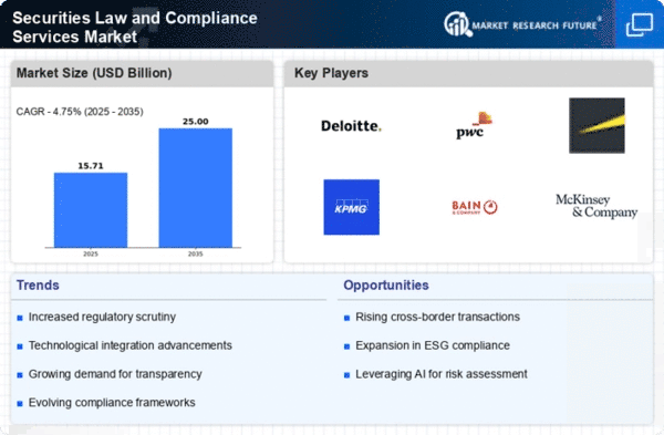 The Middle East and Africa region, with a market size of 1.0, is in the early stages of developing its Securities Law and Compliance Services Market. The growth is driven by increasing regulatory scrutiny and the need for businesses to comply with international standards. Countries like the UAE and South Africa are making strides in enhancing their regulatory frameworks, which is essential for attracting foreign investments.