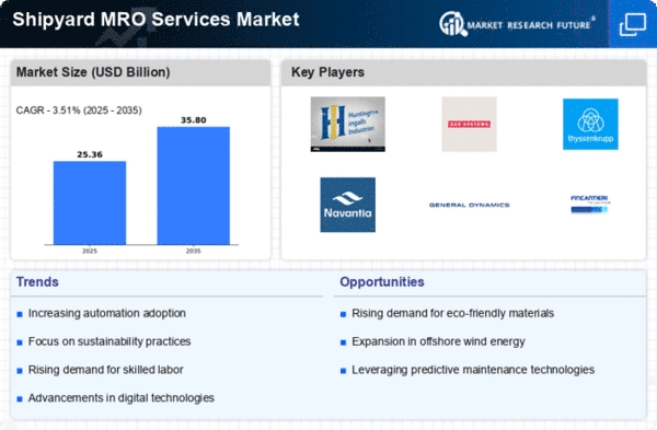 The competitive landscape is characterized by key players such as Huntington Ingalls Industries and General Dynamics, which dominate the sector. The U.S. Navy's ongoing modernization efforts and the increasing focus on sustainability in ship operations are pivotal in shaping market dynamics. Additionally, partnerships between private firms and government agencies are expected to foster innovation and efficiency in MRO services.
