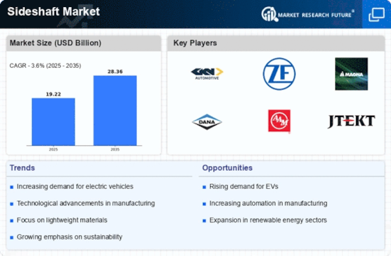 The increasing adoption of electric vehicles (EVs) is a pivotal driver for the Sideshaft Market. As consumers and manufacturers shift towards more sustainable transportation options, the demand for components that support EV functionality rises. In 2025, it is estimated that the EV market will account for a substantial percentage of total vehicle sales, thereby necessitating the production of specialized sideshafts designed for electric drivetrains. This shift not only influences the design and manufacturing processes within the Sideshaft Market but also encourages innovation in materials and engineering practices to accommodate the unique requirements of electric vehicles.