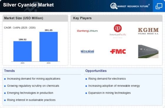 The Silver Cyanide Market is benefiting from a resurgence in investment in mining activities, particularly in regions rich in silver deposits. As mining companies seek to optimize their extraction processes, the use of silver cyanide in the leaching process becomes increasingly relevant. Recent statistics indicate that mining investments have increased by approximately 10% in the past year, driven by favorable market conditions and rising silver prices. This trend suggests that mining companies are likely to adopt more efficient methods, including the use of silver cyanide, to enhance recovery rates. Consequently, the Silver Cyanide Market stands to gain from this renewed focus on mining efficiency and productivity.