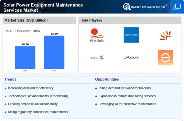 Government incentives and policies promoting renewable energy are pivotal in driving the Solar Power Equipment Maintenance Services Market. Various governments have implemented tax credits, rebates, and grants to encourage the installation of solar energy systems. These initiatives not only stimulate the market for solar equipment but also create a subsequent demand for maintenance services. For instance, regions with robust solar incentives have reported a marked increase in solar installations, leading to a corresponding rise in the need for maintenance. As policies continue to evolve, the Solar Power Equipment Maintenance Services Market is likely to experience sustained growth, as stakeholders seek to comply with regulations and maximize the efficiency of their solar investments.