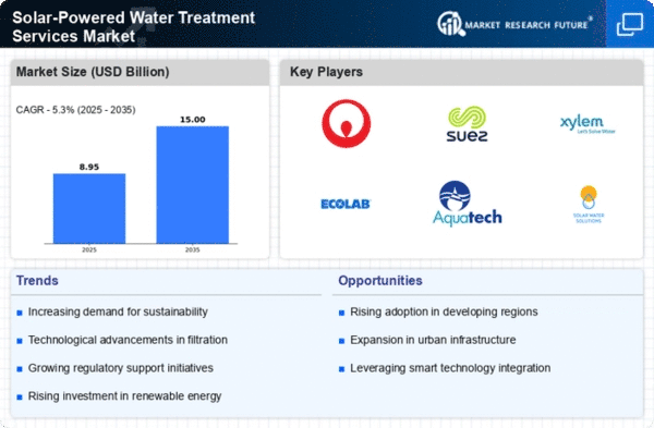 The economic advantages associated with solar-powered water treatment systems are becoming increasingly apparent, thereby propelling the Solar-Powered Water Treatment Services Market. The initial investment in solar technology may be offset by long-term savings on energy costs and reduced operational expenses. For instance, solar-powered systems can significantly lower electricity bills, which is particularly beneficial in regions with high energy costs. Furthermore, the decreasing prices of solar panels and related technologies have made these systems more accessible to a broader range of consumers. As a result, businesses and municipalities are more likely to invest in solar-powered water treatment solutions, recognizing their potential for cost savings and efficiency improvements.