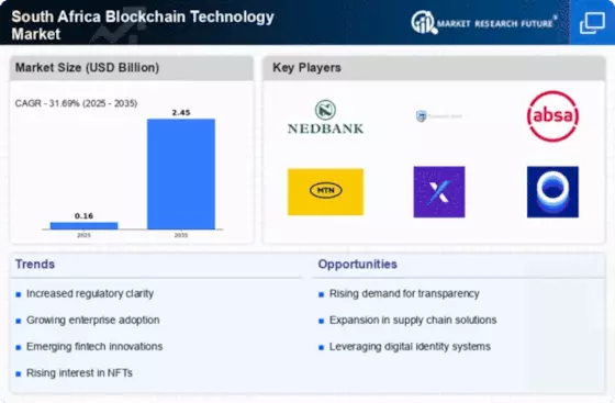 Public awareness and education regarding blockchain technology are critical drivers for the South Africa Block Chain Technology Market. As more individuals and businesses become informed about the benefits and applications of blockchain, the demand for related services and solutions is expected to rise. Educational institutions and organizations are increasingly offering courses and workshops to enhance understanding of blockchain technology. This growing knowledge base is likely to foster a more informed consumer base, which could lead to increased adoption across various sectors. As of February 2026, the emphasis on education and awareness suggests that the South Africa Block Chain Technology Market may experience a more robust growth trajectory as stakeholders become more engaged.