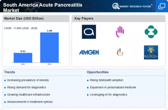 The South America Acute Pancreatitis Market is witnessing a surge in technological advancements that enhance treatment options for patients. Innovations in minimally invasive surgical techniques and endoscopic procedures have improved patient outcomes and reduced recovery times. For example, the introduction of laparoscopic techniques has allowed for more effective management of complications associated with acute pancreatitis. Additionally, the development of novel pharmacological therapies is providing new avenues for treatment, which may lead to better management of the condition. As these technologies become more widely adopted in South America, the market is expected to expand, driven by the need for effective and efficient treatment solutions for acute pancreatitis.