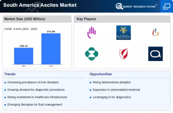 The South America Ascites Market is being propelled by technological advancements in diagnostic tools and treatment modalities. Innovations such as ultrasound-guided paracentesis and advanced imaging techniques have improved the accuracy of ascites diagnosis and management. These technologies enable healthcare professionals to provide timely and effective treatment, which is crucial for patient outcomes. Furthermore, the integration of telemedicine in rural areas of South America enhances access to specialist care, allowing for better management of ascites. As these technologies become more widely adopted, the South America Ascites Market is expected to witness significant growth, driven by improved patient care and outcomes.