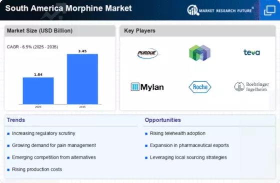 There is a growing awareness of the importance of palliative care in South America, which is positively influencing the South America Morphine Market. As healthcare systems evolve, there is a shift towards providing comprehensive care for patients with life-limiting illnesses. This has led to an increased demand for morphine as a critical component of palliative care protocols. Countries like Chile and Peru are implementing training programs for healthcare professionals to enhance their understanding of pain management, thereby increasing the utilization of morphine in clinical settings. This trend is expected to bolster the market, as more patients gain access to necessary pain relief.