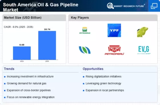 The South America Oil & Gas Pipeline Market is currently experiencing a surge in infrastructure investment, driven by the need to enhance connectivity between oil and gas production sites and consumption centers. Governments in countries such as Brazil and Argentina are prioritizing the development of pipeline networks to facilitate the efficient transportation of hydrocarbons. For instance, Brazil's National Agency of Petroleum, Natural Gas and Biofuels has reported plans to invest over USD 10 billion in pipeline infrastructure by 2027. This investment is expected to bolster the region's energy security and reduce transportation costs, thereby attracting further investments in the oil and gas sector.