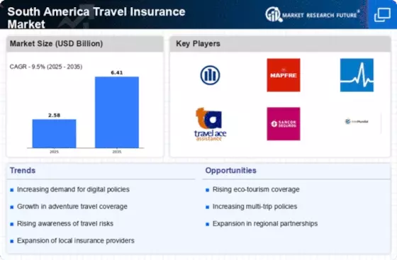 The South America Travel Insurance Market is benefiting from an increased focus on health and safety among travelers. As travelers become more conscious of health-related issues, including access to medical care and emergency evacuation, the demand for comprehensive travel insurance policies is rising. In 2025, it is projected that health-related claims will account for over 50% of all travel insurance claims in the region. Insurers are responding by developing policies that specifically address health and safety concerns, such as coverage for medical emergencies and trip interruptions due to health issues. This heightened focus on health and safety is likely to drive growth in the South America Travel Insurance Market, as travelers seek peace of mind during their journeys.