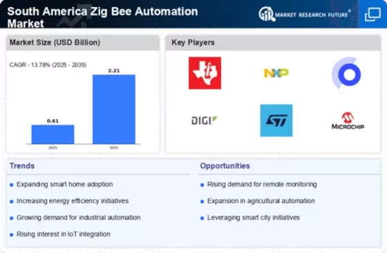 The expansion of smart home technologies is significantly influencing the South America Zig Bee Automation Market. As consumers increasingly seek convenience and security, the demand for smart home devices is on the rise. Zig Bee technology provides a reliable and efficient communication protocol for various smart home applications, including lighting, security systems, and climate control. As of February 2026, the smart home market in South America is expected to grow at a CAGR of 25%, with Brazil and Argentina leading the charge. This growth is supported by the increasing availability of affordable smart devices and the rising awareness of home automation benefits. The integration of Zig Bee solutions in smart homes not only enhances user experience but also contributes to energy efficiency, making it a key driver for the South America Zig Bee Automation Market.