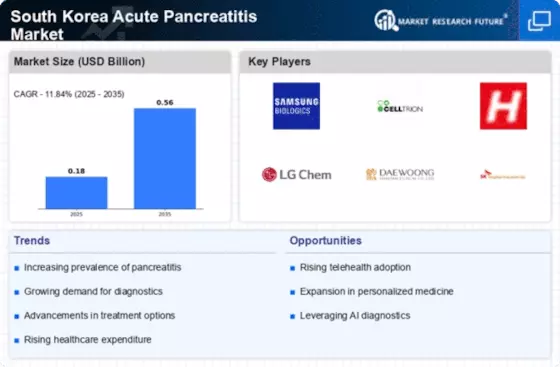 The South Korea Acute Pancreatitis Market is witnessing a surge in technological advancements that enhance treatment options for patients. Innovations in minimally invasive surgical techniques and endoscopic interventions have revolutionized the management of acute pancreatitis. For example, the introduction of endoscopic retrograde cholangiopancreatography (ERCP) has improved the ability to diagnose and treat complications associated with acute pancreatitis. Furthermore, the development of novel pharmacological agents targeting inflammation and pain management is expected to expand treatment possibilities. As these technologies become more widely adopted, they are likely to drive growth in the South Korea Acute Pancreatitis Market, providing patients with more effective and less invasive treatment alternatives.