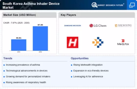 Technological advancements in inhaler devices are significantly influencing the South Korea Asthma Inhaler Device Market. Innovations such as smart inhalers, which incorporate digital health technologies, are gaining traction among consumers. These devices provide real-time data on medication usage and adherence, empowering patients to manage their asthma more effectively. The integration of mobile applications with inhalers is also becoming increasingly popular, allowing for better tracking of symptoms and medication schedules. As a result, the South Korea Asthma Inhaler Device Market is witnessing a shift towards more sophisticated inhalation devices that enhance patient engagement and improve health outcomes.