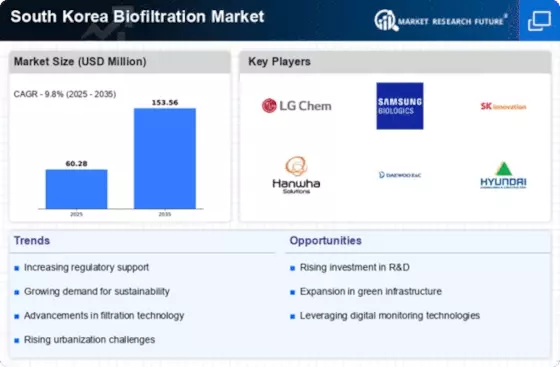 Technological innovations are playing a pivotal role in shaping the South Korea Biofiltration Market. Recent advancements in materials and processes have enhanced the efficiency and effectiveness of biofiltration systems. For example, the development of advanced biofilters utilizing nanotechnology has shown promising results in treating industrial effluents. These innovations not only improve pollutant removal rates but also reduce operational costs, making biofiltration more attractive to businesses. The South Korean government is actively supporting research and development initiatives, which further accelerates the adoption of these technologies. As a result, the market is expected to witness a compound annual growth rate of approximately 7% over the next few years, driven by the increasing demand for efficient and cost-effective biofiltration solutions.