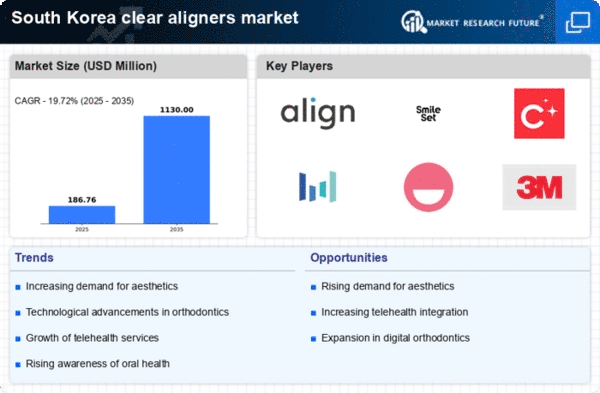 Technological advancements play a pivotal role in shaping the clear aligners market in South Korea. Innovations such as 3D printing and advanced imaging techniques enhance the precision and effectiveness of aligner production. These technologies enable dental professionals to create customized treatment plans tailored to individual patient needs, thereby improving patient satisfaction and outcomes. Furthermore, the integration of artificial intelligence in treatment planning is expected to streamline processes and reduce turnaround times. As a result, the clear aligners market is likely to witness increased adoption rates among both practitioners and patients, contributing to an anticipated market growth of around 20% in the coming years. This technological evolution not only enhances the quality of care but also positions clear aligners as a preferred choice in modern orthodontics.