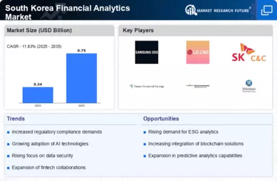 The focus on cybersecurity is increasingly becoming a critical driver in the South Korea Financial Analytics Market. With the rise of digital transactions and data breaches, financial institutions are prioritizing the protection of sensitive information. In 2025, cybersecurity spending in the financial sector was projected to exceed USD 1 billion, highlighting the urgency of this issue. As organizations adopt advanced analytics solutions, they must also ensure that these systems are secure from potential threats. The South Korean government has implemented stringent regulations to safeguard financial data, which further emphasizes the importance of cybersecurity in analytics. This focus on security not only protects organizations but also builds consumer trust, which is essential for the growth of the financial analytics sector. Thus, the emphasis on cybersecurity is likely to drive advancements in the South Korea Financial Analytics Market.