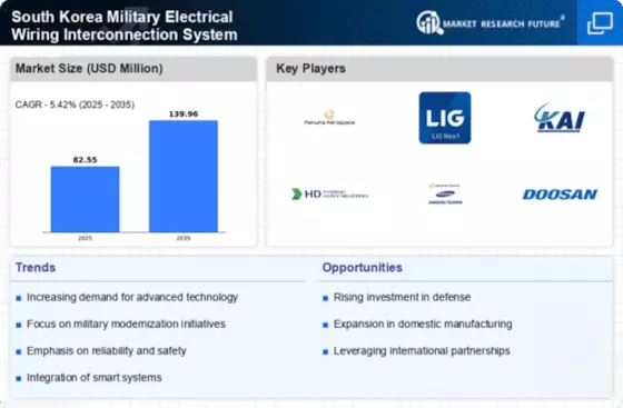 The South Korea Military Electrical Wiring Interconnection System Market is witnessing increased collaboration with defense contractors. The South Korean government is actively engaging with both domestic and international defense firms to enhance the capabilities of its military systems. This collaboration often involves joint ventures and partnerships aimed at developing advanced electrical wiring solutions tailored to specific military needs. Such alliances not only facilitate knowledge transfer but also promote innovation in the design and manufacturing of wiring interconnection systems. As defense contractors invest in research and development, the South Korea Military Electrical Wiring Interconnection System Market is likely to benefit from the introduction of cutting-edge technologies and improved product offerings.