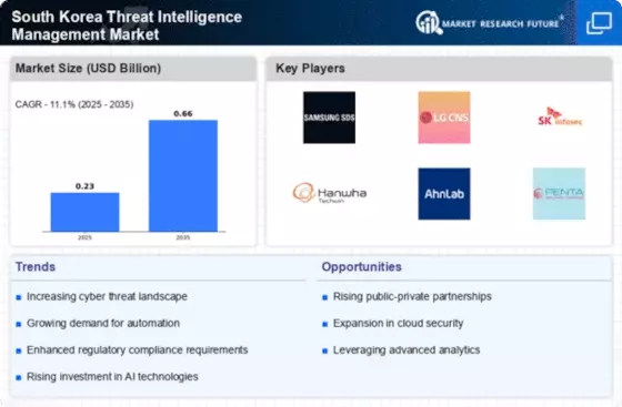 The integration of advanced technologies, such as artificial intelligence and machine learning, is transforming the South Korea Threat Intelligence Management Market. These technologies enable organizations to analyze vast amounts of data and identify potential threats with greater accuracy and speed. The market is witnessing a surge in the development of AI-driven threat intelligence platforms that can predict and respond to cyber threats in real-time. As businesses increasingly recognize the value of leveraging these technologies, the demand for sophisticated threat intelligence solutions is expected to rise. This trend not only enhances the effectiveness of cybersecurity measures but also positions South Korea as a leader in the global cybersecurity landscape.