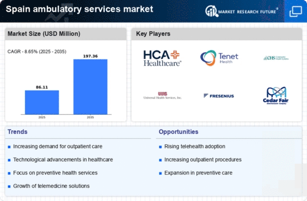 Spain's aging population is a critical driver of growth in the ambulatory services market. As the demographic landscape shifts, the proportion of individuals aged 65 and older is projected to rise significantly, leading to increased healthcare needs. This demographic change is associated with a higher prevalence of chronic conditions, which require ongoing management and regular medical attention. Recent statistics indicate that the elderly population is expected to constitute over 25% of the total population by 2030. Consequently, healthcare providers are adapting their services to cater to this demographic, expanding their ambulatory care offerings to include specialized services for geriatric patients. The ambulatory services market is thus poised to capitalize on this trend, as it aligns with the growing demand for tailored healthcare solutions that address the unique needs of older adults.
