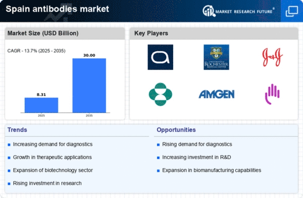 The ongoing investment in healthcare infrastructure in Spain is a significant driver for the antibodies market. The Spanish government has allocated substantial funds to enhance healthcare facilities and services, with a focus on improving patient outcomes. This investment is expected to increase the availability of advanced diagnostic and therapeutic options, including antibody-based treatments. As healthcare systems evolve, the demand for innovative therapies is likely to rise, thereby propelling the antibodies market. Enhanced infrastructure may also facilitate better access to these therapies for patients across various regions.
