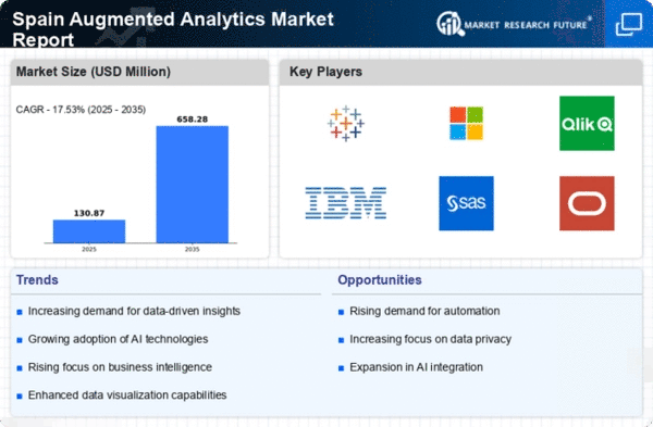 The expansion of cloud-based analytics solutions is significantly impacting the augmented analytics market in Spain. As organizations migrate to cloud environments, they are seeking analytics tools that can seamlessly integrate with their existing systems. Cloud-based solutions offer scalability, flexibility, and cost-effectiveness, making them attractive to businesses of all sizes. Recent data indicates that the cloud analytics market is expected to grow by over 40% in the coming years, which will likely benefit the augmented analytics market as well. This trend suggests that companies are increasingly prioritizing cloud solutions to enhance their analytical capabilities and drive innovation.