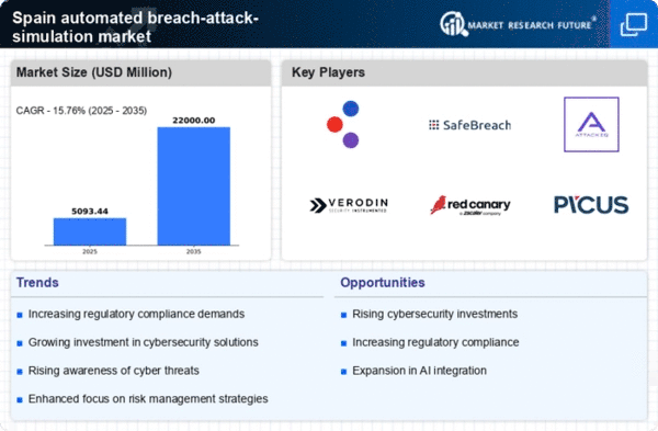 The escalating frequency and sophistication of cyber threats in Spain is a primary driver for the automated breach-attack-simulation market. Organizations are increasingly aware of the potential financial and reputational damage that breaches can inflict. In 2025, it is estimated that cybercrime could cost businesses globally over $10 trillion annually, with a significant portion of this impact felt in Spain. As a result, companies are investing in automated breach-attack simulations to identify vulnerabilities before they can be exploited. This proactive approach not only enhances security posture but also aligns with the growing need for continuous security assessments in a rapidly evolving threat landscape.