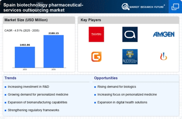The biotechnology pharmaceutical-services-outsources market is experiencing a notable surge in demand for biopharmaceuticals, driven by the rising prevalence of chronic diseases and the aging population in Spain. This demand is reflected in the market's growth trajectory, with biopharmaceuticals projected to account for over 50% of the total pharmaceutical market by 2025. The increasing focus on innovative therapies, particularly in oncology and autoimmune diseases, is propelling investments in research and development. Consequently, biotechnology firms are seeking outsourcing services to enhance their operational efficiency and expedite drug development processes. This trend indicates a robust opportunity for service providers within the biotechnology pharmaceutical-services-outsources market to cater to the evolving needs of biopharmaceutical companies.